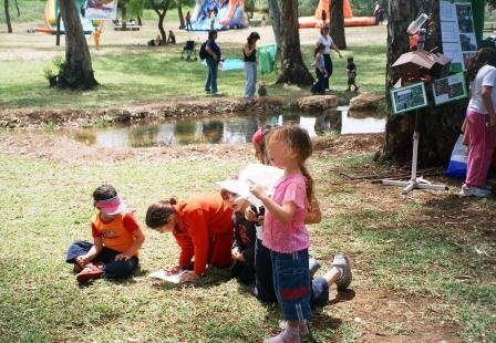 ילדים נהנים לצפות בציפורים שבפארק אפק