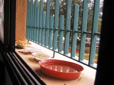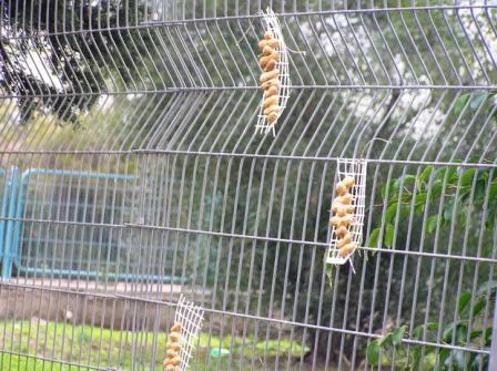 שרשרות בוטנים לירגזים על הגדר מול הכיתה