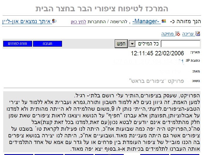 תגובת אחד התלמידים על הפרויקט בפורום האתר
